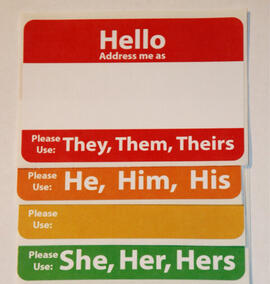 How to share your own pronouns, simply greet a person or group "My name is --- and my pronouns are ---"